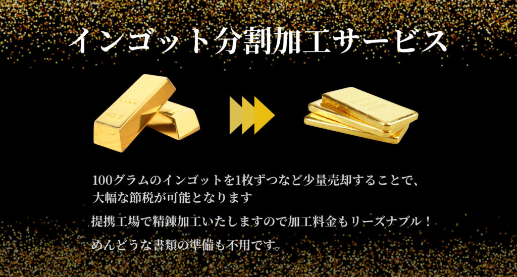 - 加工内容: 金の1kgバーを100gバー10枚に加工。